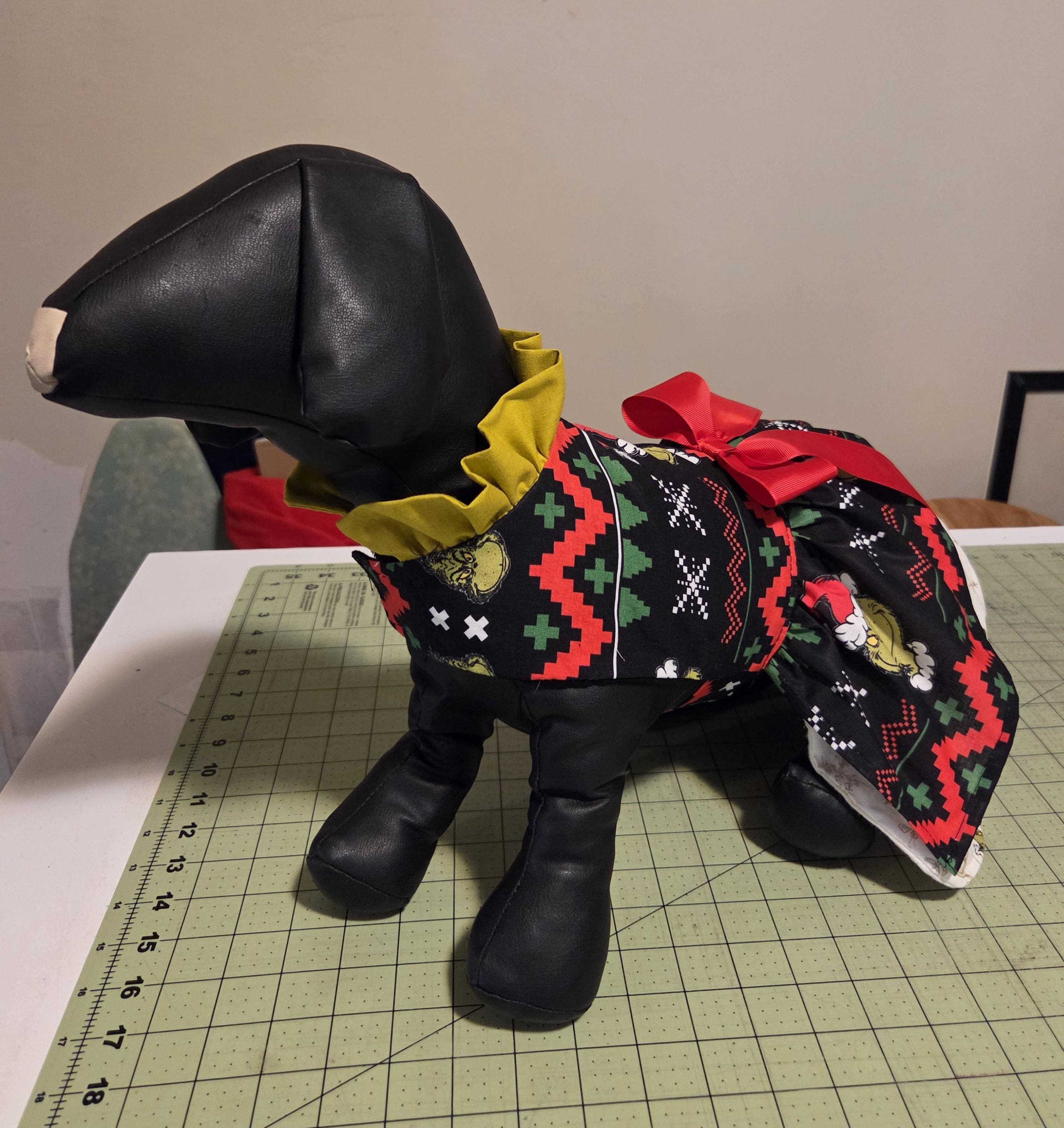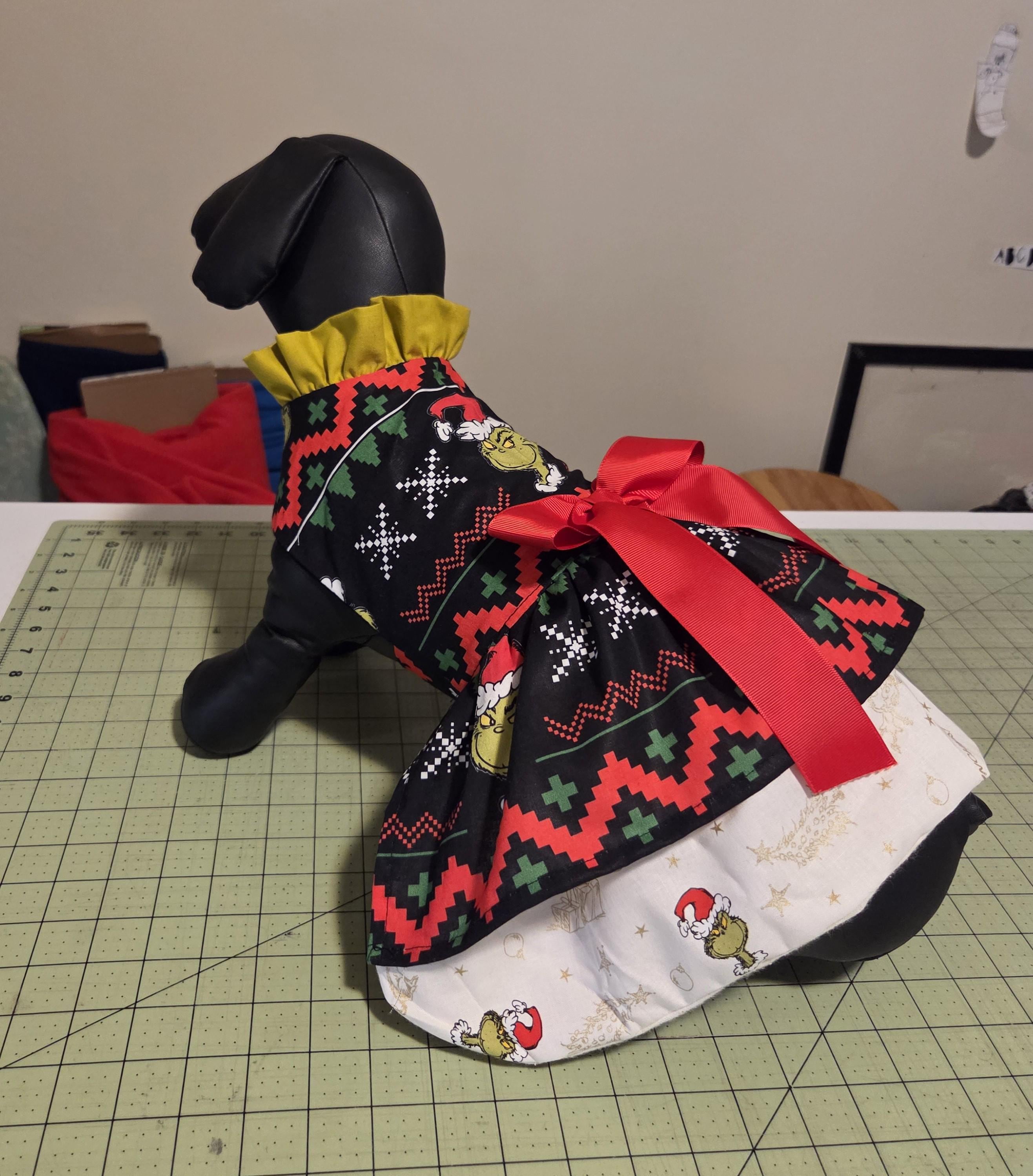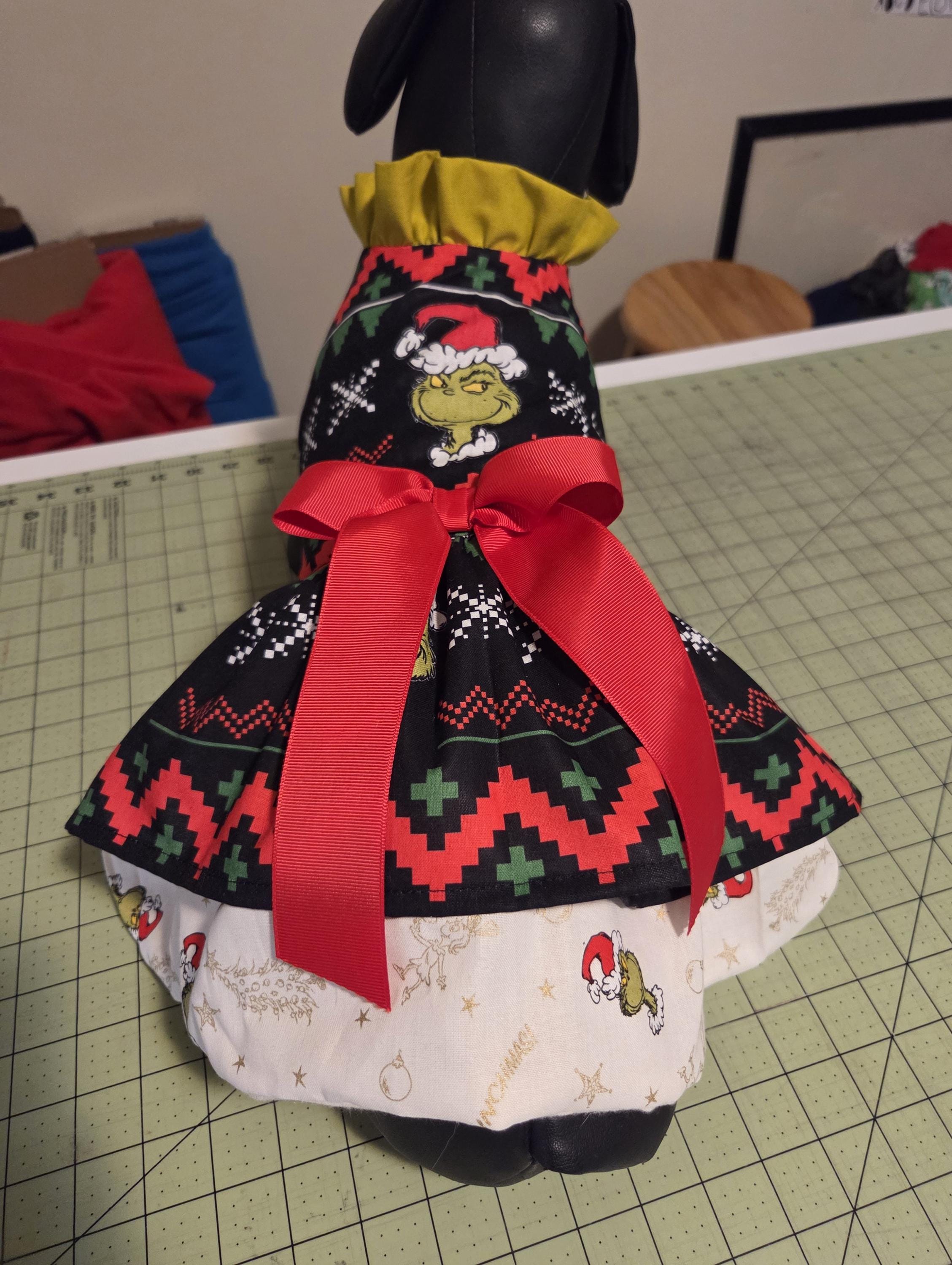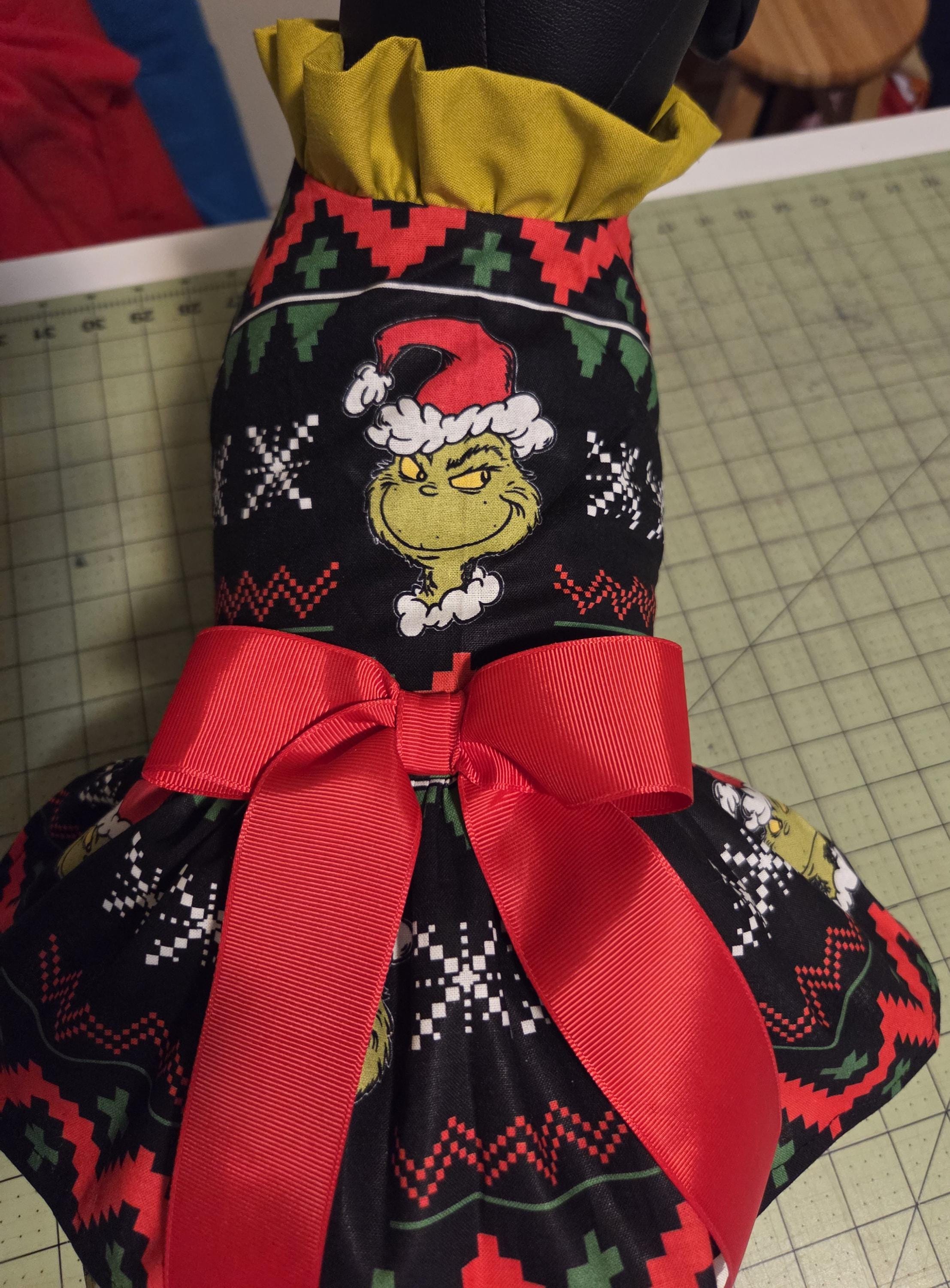 Looking like a Grinchy Christmas! Your pup will be the center of attention in this Grinch dress.